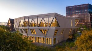 It is designed by Studio Gang and is Harvard’s first large building using mass timber as a major structural and aesthetic component.